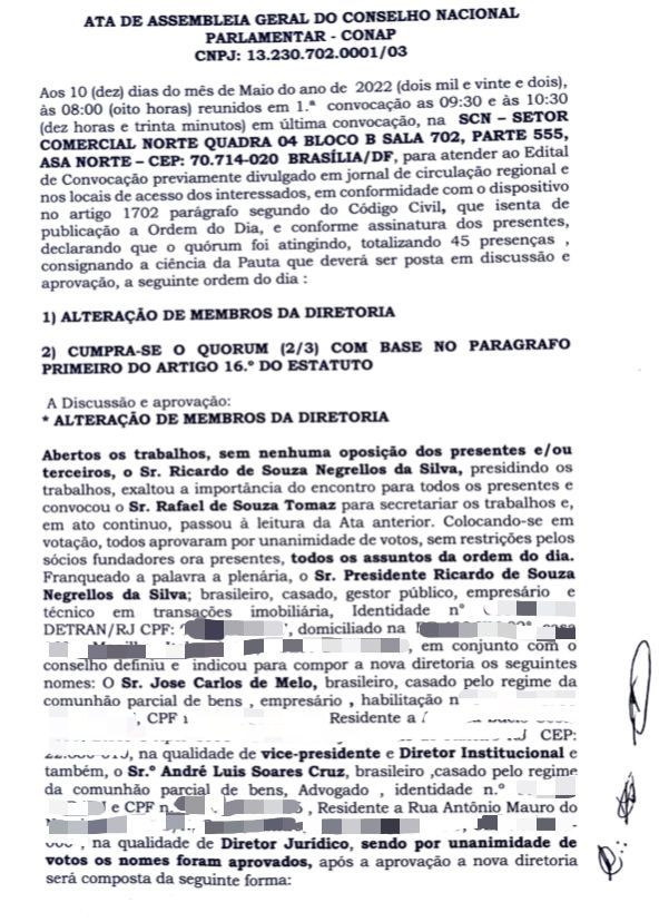 Em menos de 3 dias o empresário com raízes em Itaperuna, José Carlos de Melo revolucionou o meio político local, regional e estadual e agora mais ainda ao ser empossado como vice-presidente e diretor institucional do CONAP. A ata de assembleia foi no dia 10 de maio de 2022, na SEDE em Brasília-DF
