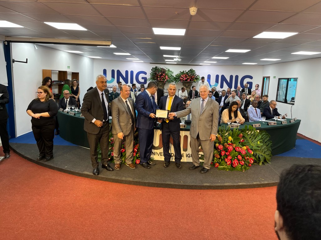 O empresário José Carlos de Melo foi um dos convidados a fazer parte da mesa na entrega de títulos, comendas e medalhas a várias personalidades agraciadas no evento.