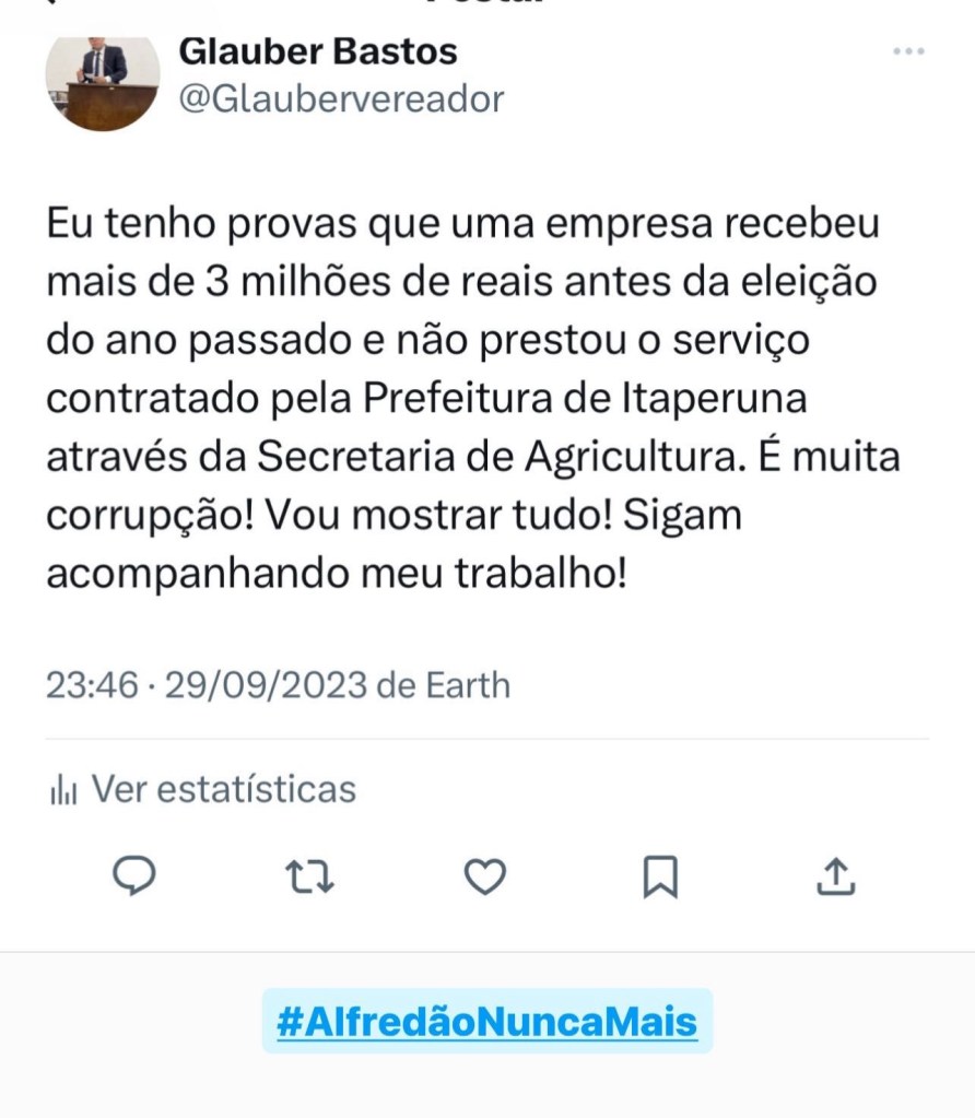 Vereador Glauber diz ter provas de desvio de milhões de reais em Itaperuna-RJ