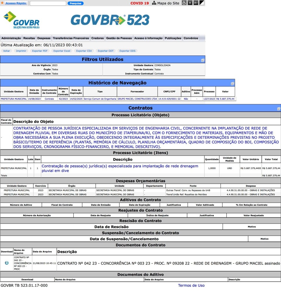 Através de convênios com a Caixa Econômica Federal, o governo de Alfredo Paulo Marques Rodrigues, o popular “Alfredão”, retomou os projetos de infraestrutura do Bairro Vinhosa de Drenagem Urbana e Esgotamento Sanitário, contemplando neste novo certame uma ETE(Estação de Tratamento de Esgoto). As licitações dos projetos foram realizadas e a empresa vencedora foi o Grupo Maciel Construções Ltda, com contratos nos valores de R$ 5.687.379,44(cinco milhões, seiscentos e oitenta e sete mil, trezentos e setenta e nove reais e quarenta e quatro centavos) e o outro no valor de R$ 1.190.506,11 (hum milhão, cento e noventa mil, quinhentos e seis reais e onze centavos) conforme portal de transparência da prefeitura de Itaperuna-RJ(veja abaixo).