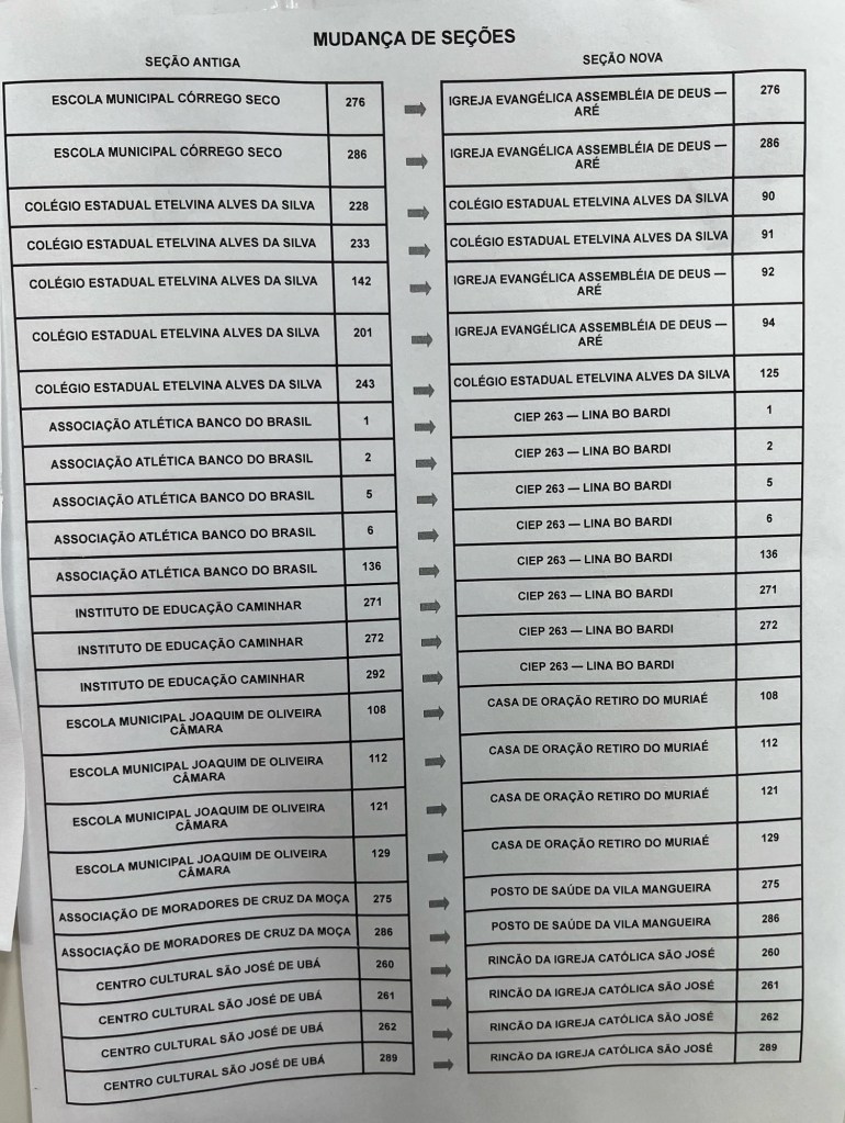 Os eleitores que votavam na Associação de Moradores de Cruz da Moça em São José de Ubá passarão a votar no “Posto de Saúde da Vila Mangueira”.