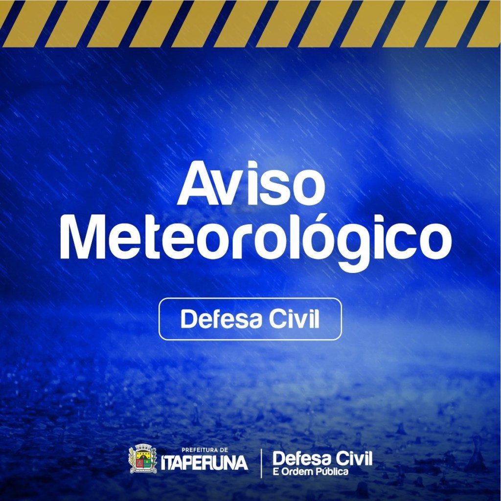 A Defesa Civil de Itaperuna informa, nesta quinta-feira, dia 21/03/2024 que, segundo o Instituto Nacional de Meteorologia – INMET- há previsão de chuva forte no município, chegando a 60 mm/h ou maior que 100 mm/dia, com ventos fortes superiores a 100 km/h, entre às 00h do dia 22/03 e 10h do dia 24/03/2024.
