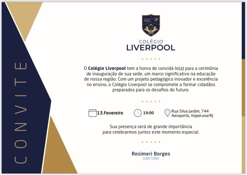 O Colégio Liverpool de Itaperuna, irá inaugurar sua mais nova unidade hoje 13/02 a partir das 19h.